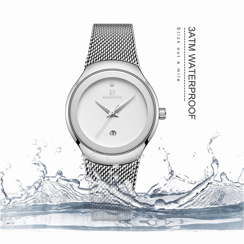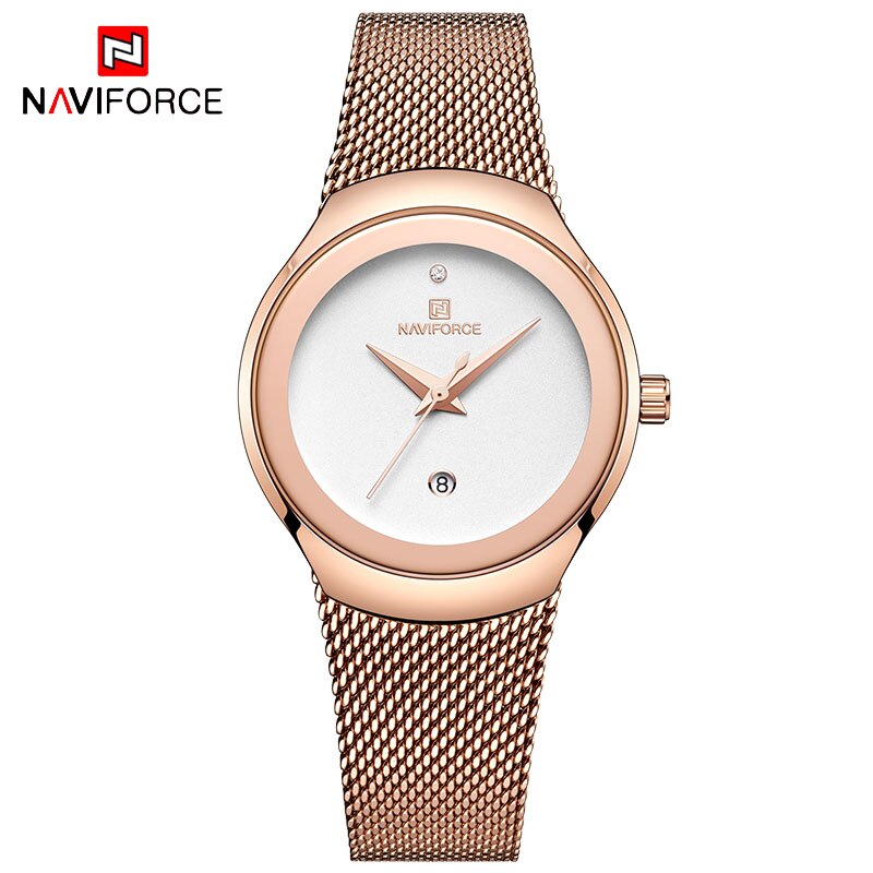 NAVIFORCE Luxury Brand Watch Women Fashion Dress Quartz Watch Ladies Full Steel Mesh Strap Simple Girl Watches Relogio Feminino
